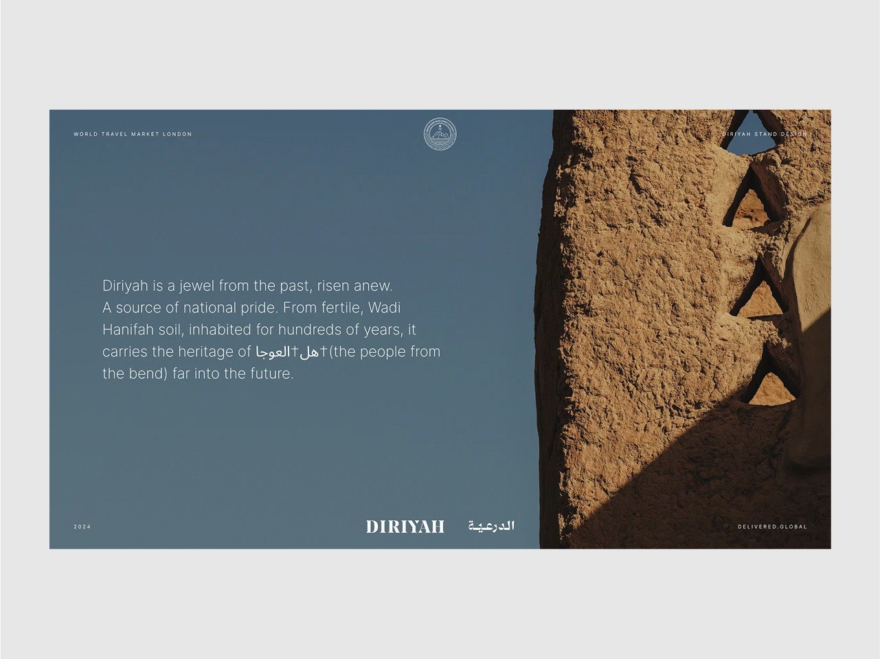 Our team worked closely with stakeholders to ensure that the final presentation aligned seamlessly with Diriyah’s brand values and strategic objectives. The result was a standout presence at WTM—an elegant fusion of tradition, storytelling, and cutting-edge design.