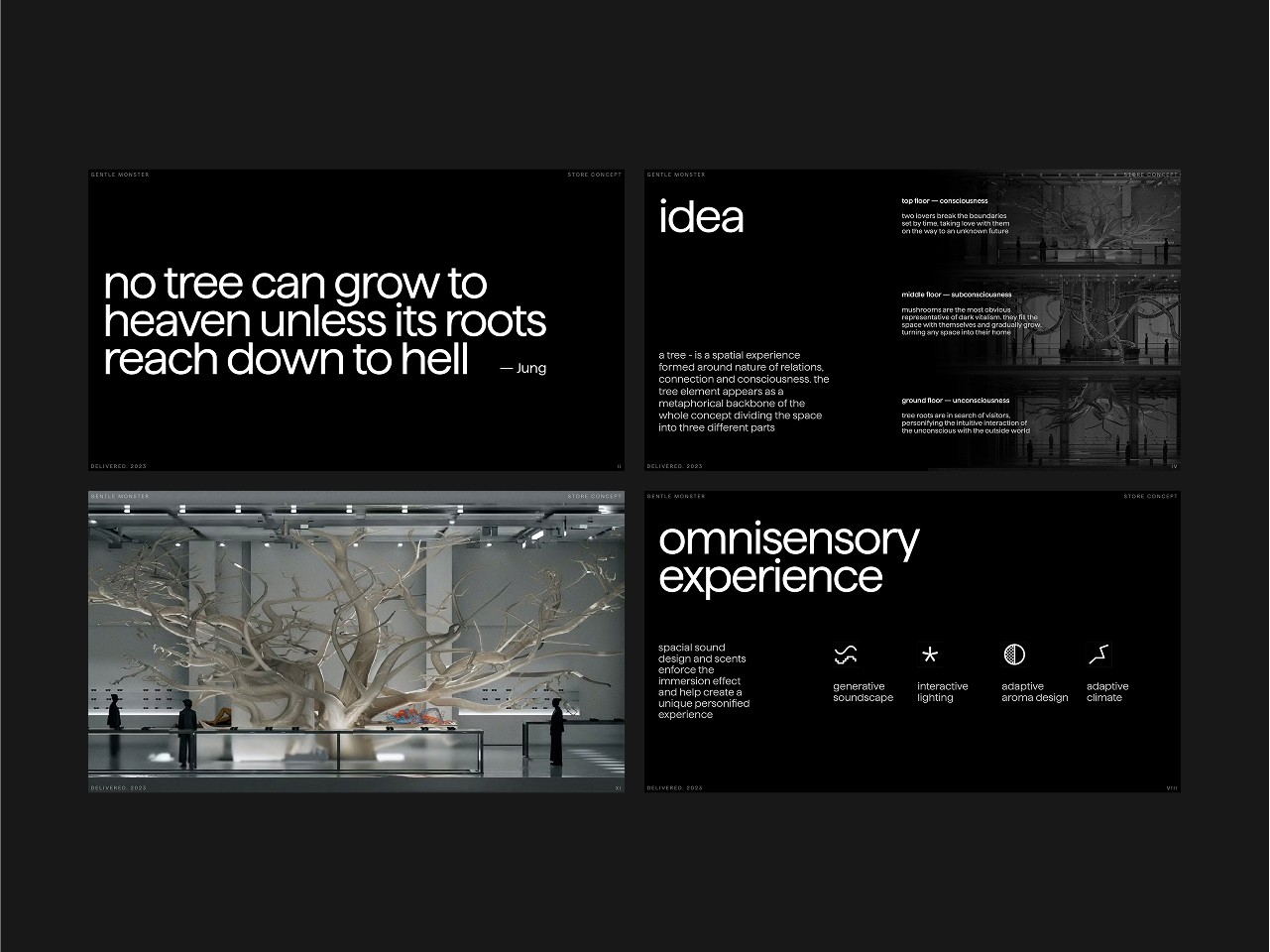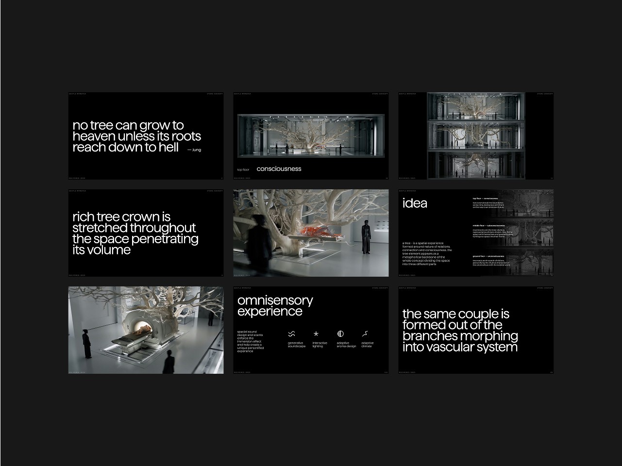 We’ve developed a conceptual deck for a visionary new experience boutique, created specifically for our favorite brand, Gentle Monster. This project is a deep dive into the brand’s surreal, boundary-pushing aesthetic—reimagined as an immersive, multi-sensory space that blurs the line between retail, art, and performance. Inspired by Gentle Monster’s commitment to storytelling and unconventional design, the boutique is envisioned not just as a store, but as a living, breathing installation that evolves with time and audience interaction.